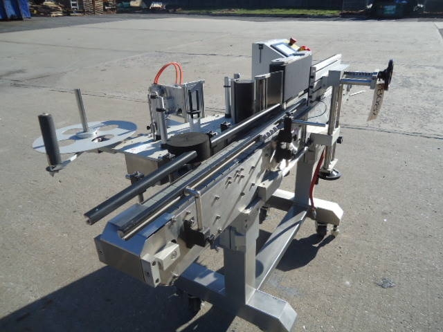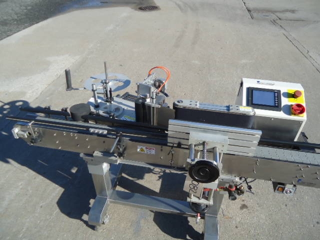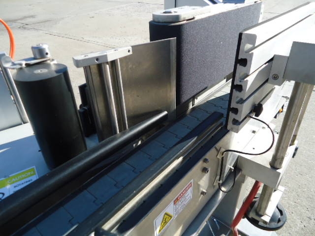 1-Used Accutek Fully Automatic Pressure Sensitive Spot/Wrap Around Labeler Model 24-APS-106, S/N A-17203341 On casters for portability, Labeler has timing wheel and approx. 6 in. high wrap around belt. With Delrin Plastic Tabletop Conveyor Chain. Total length of Conveyor is approx. 80 in. long. Labeler has Hot Stamp Coder. Equipped with Fuji Electric Control Panel. Labeler last used in beverage industry. (Stock #8082)
