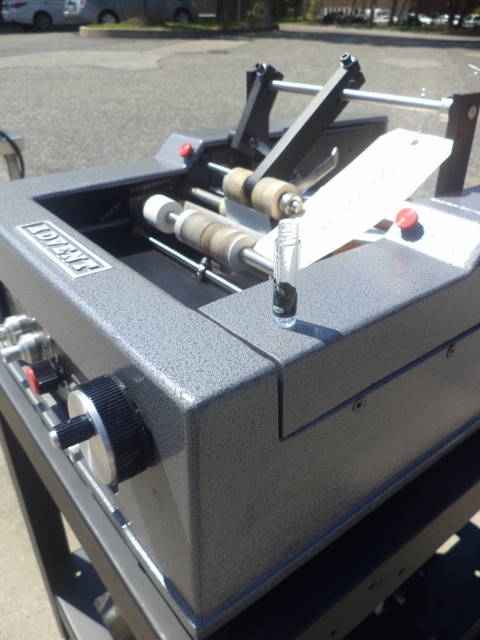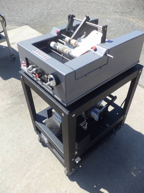 1-Used Advent Model 310 Semi-Automatic Pressure Sensitive Labelling Machine, S/N 11714. Suitable for spot and wraparound labeling, machine is driven by single phase, 60 cycle, 110 volt electric motor. Mounted on portable stand with casters. (Stock #8005H)