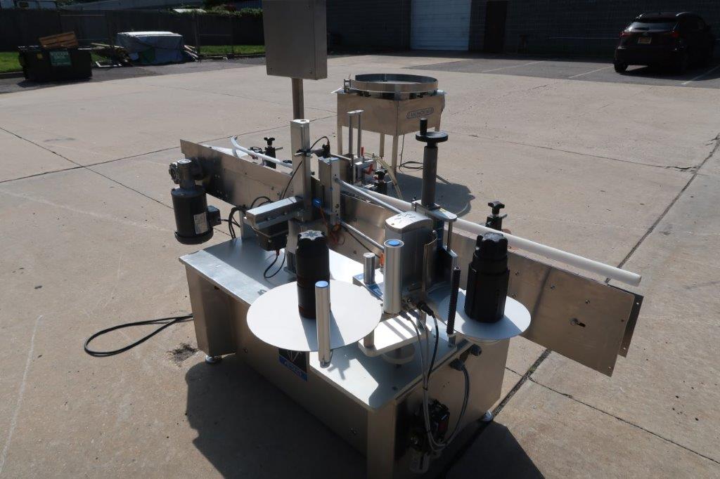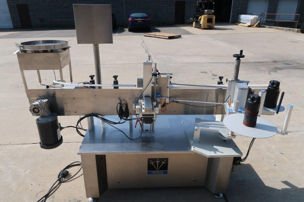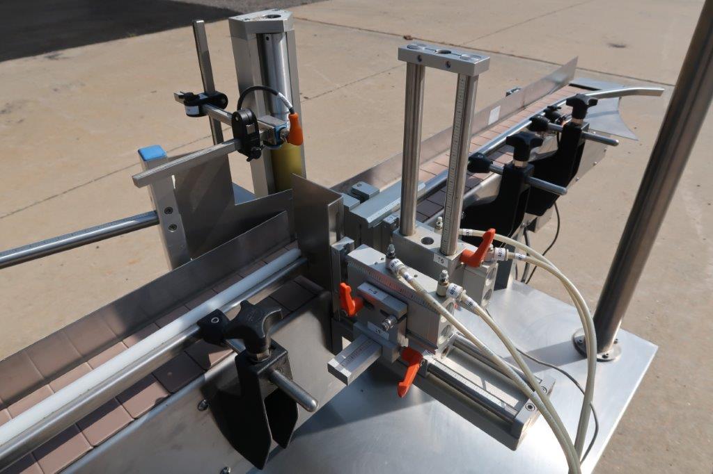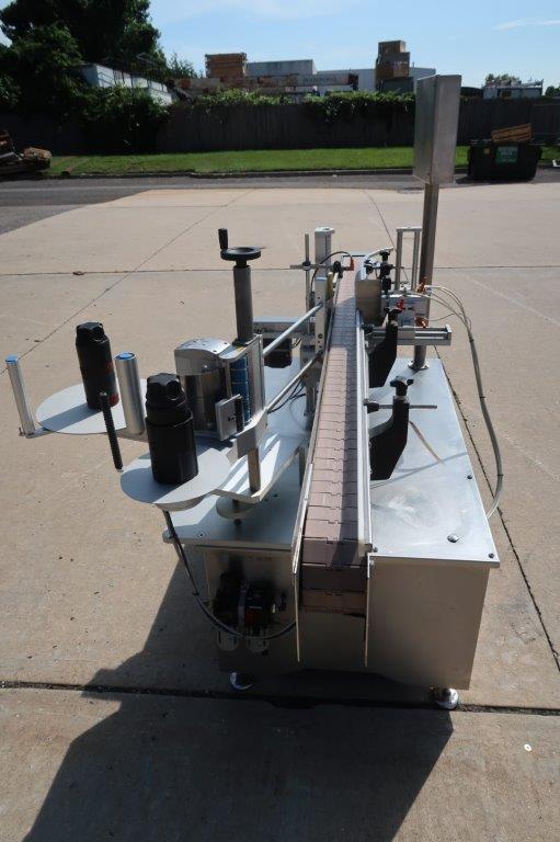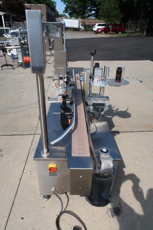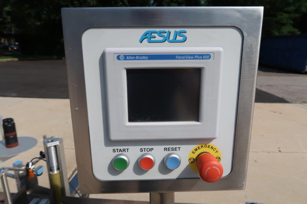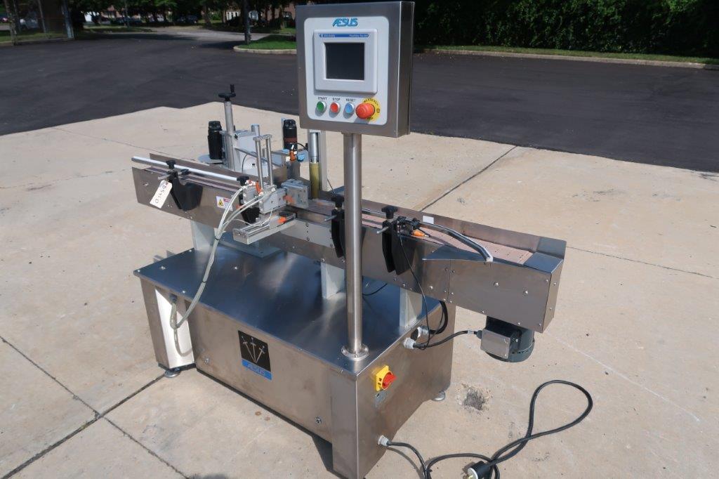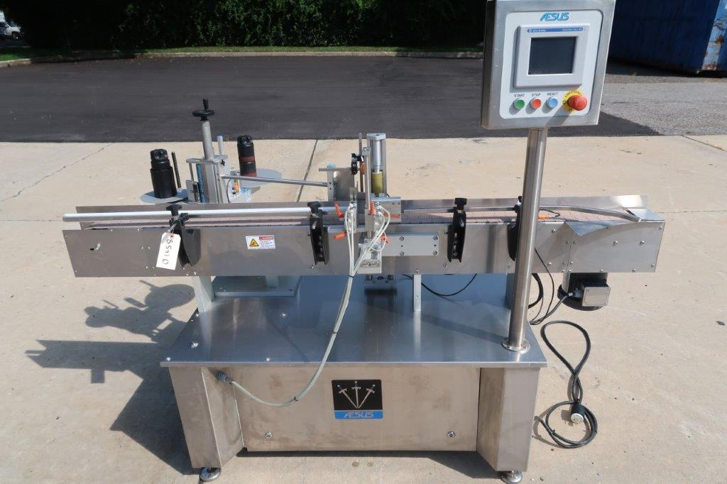 1-Used Aesus “ Eco Wrap Prism” Automatic Inline Pressure Sensitive Labeler, Serial Number 518610116. With stainless steel cabinetry, Labeler is equipped with Post Mounted Stainless Allen Bradley PanelView Plus 600 Control panel and Herma H400-16L Labeling head. With 4 In. Wide plastic tabletop conveyor chain, with adjustable guide rails, machine has single phase, 60 cycle, 208 Volt electrics. (Stock# 8541D)