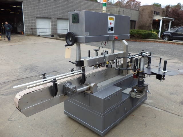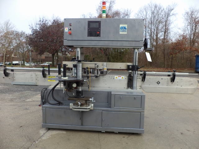 1-Used CCL/Avery Automatic Front & Back Pressure Sensitive Labeling Machine Model 8505, S/N 407618. Equipped with “hold down belt”, machine has approx. 4 in. wide plastic tabletop conveyor chain with overall length of approx. 134 in. Suitable for doing labels up to approx. 6-1/2 in. high. Machine is single phase, 60 cycle. 220 volt. (Stock #7851G)