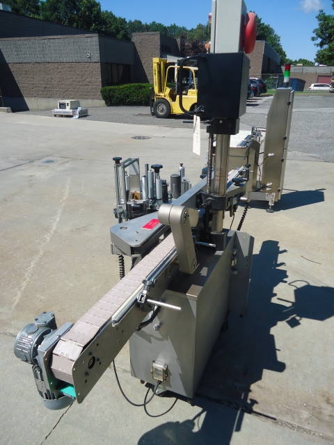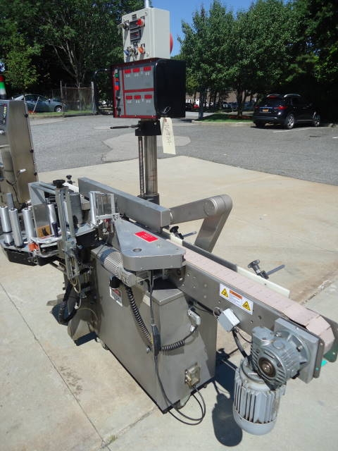 1-Used harland “sirius” automatic pressure sensitive spot/wrap around labeler, s/n 31019. This microprocessor controlled labeler. Has top hold down belt and approx. 96 in. Long conveyor length. With top mounted digital control panel with variable speed controls, labeler has norwood hot stamp printer and wrap around belt. (stock #7697a)