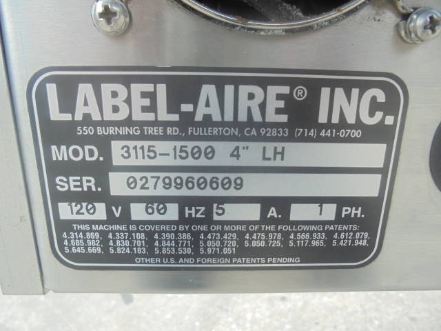Label-Aire 3115 Pressure Sensitive Label Applicator, Single Phase