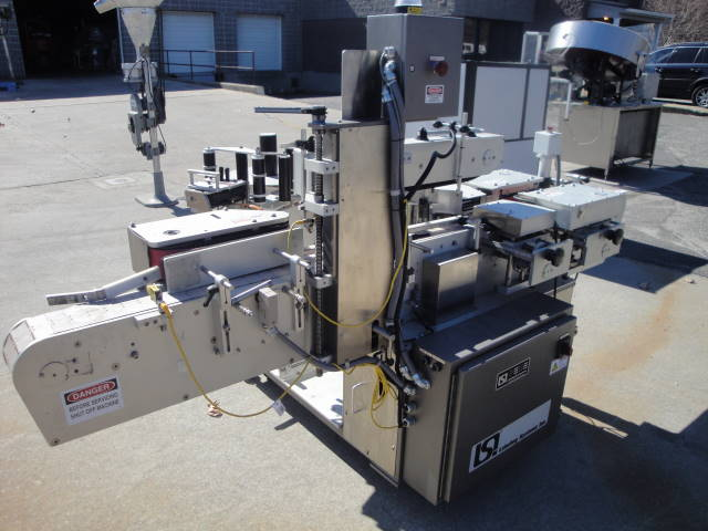 1-USED LSI (LABEL SYSTEMS, INC.) MODEL 4500 AUTOMATIC PRESSURE SENSITIVE LABELING MACHINE, S/N 140475. ON CASTERS FOR PORTABILITY, LABELER CAN HANDLE BOTH SPOT AND WRAP AROUND LABELING. WITH LSI MODEL 3000-16 LABELING HEAD, MACHINE HAS A “HOLD DOWN” BELT THAT STABILIZES CONTAINERS, AN APPROX. 4-1/2″ WIDE PLASTIC TABLETOP CONVEYOR CHAIN AND NORWOOD RS-1100 LABEL CODER. ELECTRIC SPECIFICATIONS: SINGLE PHASE, 60 CYCLE. (WOHL STOCK #7469A)