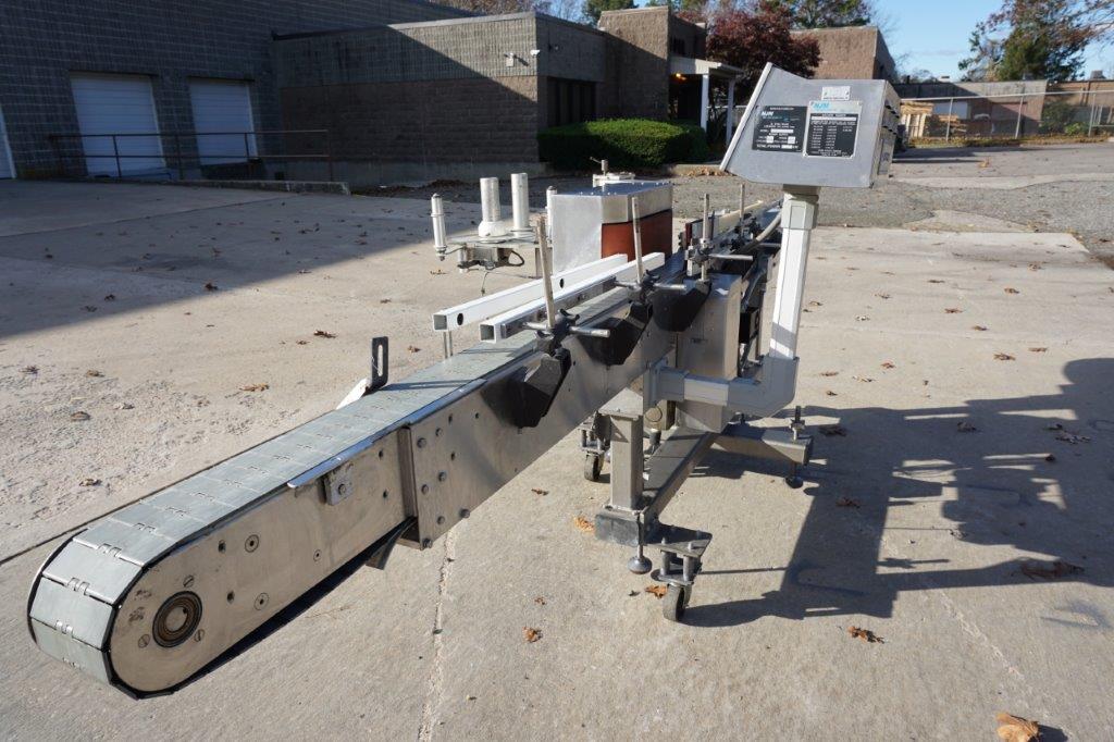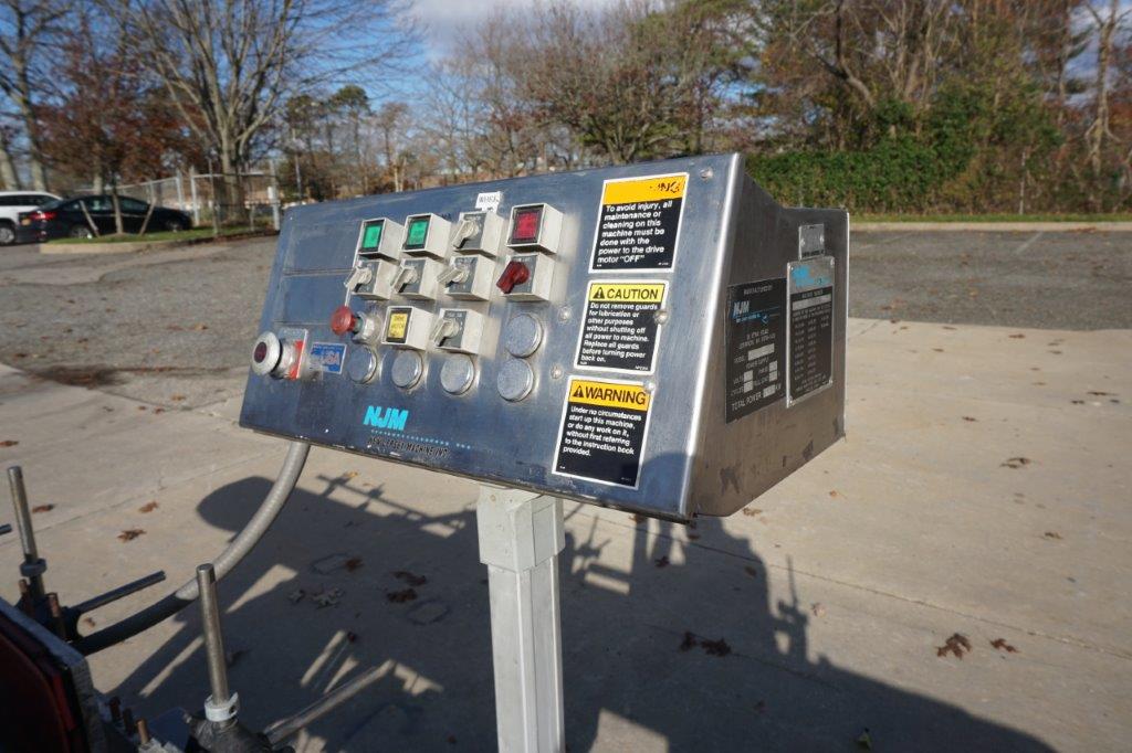 1-Used NJM Auto Colt II fully Automatic Pressure Sensitive Spot/Wrap Around Labeling Machine, Machine/Serial Number 326SRWP-2005. On casters for portability, this Labeler has timing wheel and approx. 6 in. high wrap around belt. With top mounted control panel, Conveyor has approx. 4-1/2 in. wide plastic tabletop chain. Electrical specifications single phase, 60 cycle, 110 volt. Last used in food industry. (Stock #8445B)