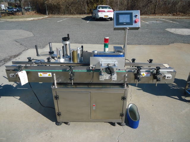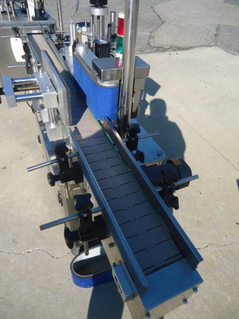 1-USED OCEAN PACKING AUTOMATIC SPOT/WRAPAROUND STAINLESS STEEL PRESSURE SENSITIVE LABELING MACHINE, MODEL OPLM-AR. WITH APPROX. 4-1/2 IN. WIDE PLASTIC TABLETOP CHAIN, MACHINE HAS 6 IN. HIGH WRAPAROUND BELT. WITH DELTA CONTROLLER, LABELER HAS VARIABLE SPEED CONTROL, TIMING WHEEL FOR SYNCHRONIZING CONTAINERS AND SINGLE PHASE ELECTRICS. THIS COMPACT MACHINE HAS OVERALL LENGTH OF APPROX. 78 IN. (STOCK #7770B)