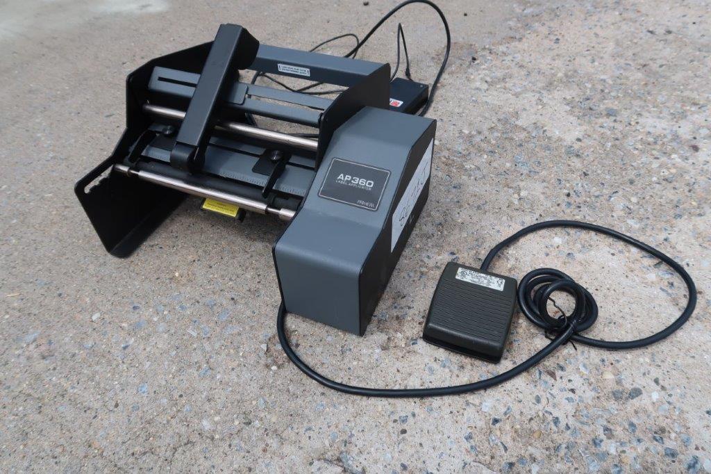 1-Used Primera Model AP360 Tabletop Label Applicator.  Equipped with single phase electrics. (Stock #8671J)