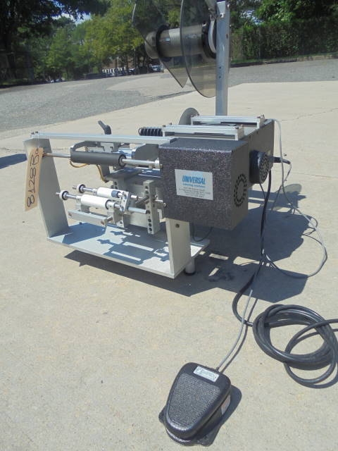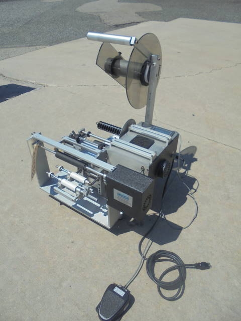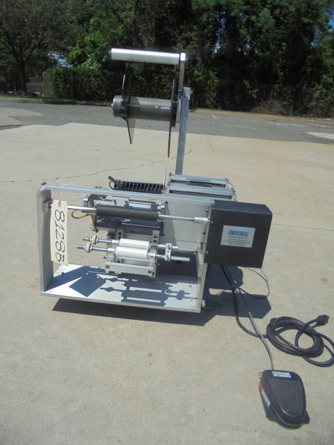 1-Used Universal Model R-310 Tabletop Semi-Automatic Pressure Sensitive Labeling Machine, S/N R360H-1021. Suitable for spot or wraparound labeling, this foot pedal actuated labeler has single phase electrics. (Stock #8128B)