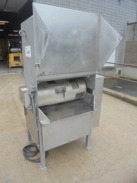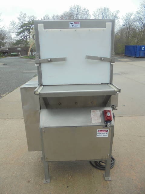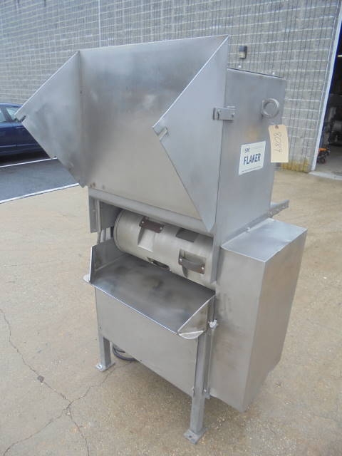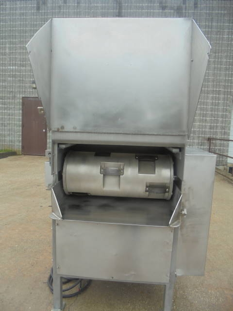 1-Used General Machinery Corporation “GENMAC” Model 3100 S/M Frozen Meat Flaker/Slicer, S/N 5359. Suitable for flaking or slicing frozen meat up to approx. 9″ thick, 20″ wide, 24″ long. Driven by 20 HP 3/60/230-460 volt motor. One block can be sliced or flaked within 30 seconds, depending on the block temperature and type of product being cut. Slicing/cutting drum turns at 450 rpm and machine has stainless steel guards and conforms with USDA standards. (Stock #8089)