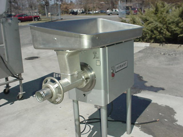 1-Used hobart model 4146 grinder, serial #11-109-346, ml #16812. Driven by 5hp 3/60/220 volt motor. With top mounted stainless steel feed pan.