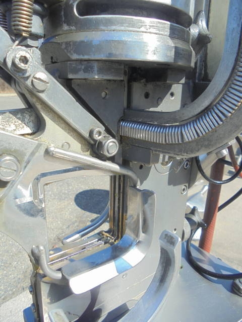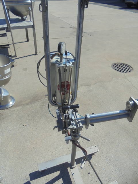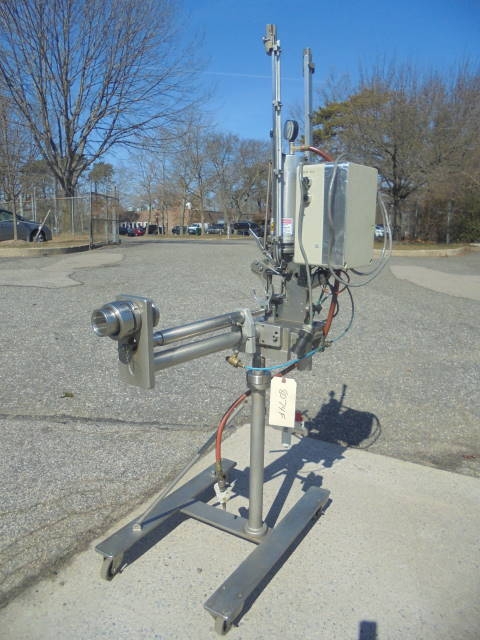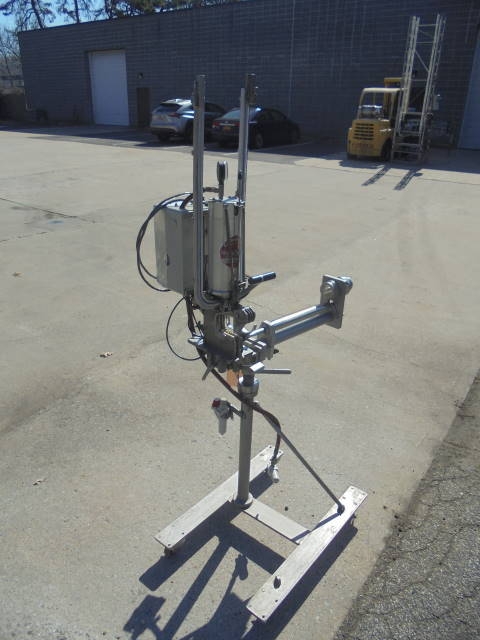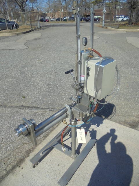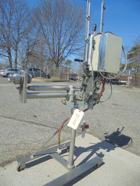 1-Used Technopack “Clipper” Semi-Automatic Sealing/Clipping Machine. On portable base with casters, machine was last clipping casings of seafood. This is an electrically operated machine that needs an air source. (Stock #8074F)