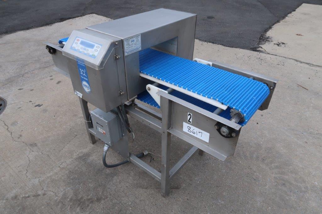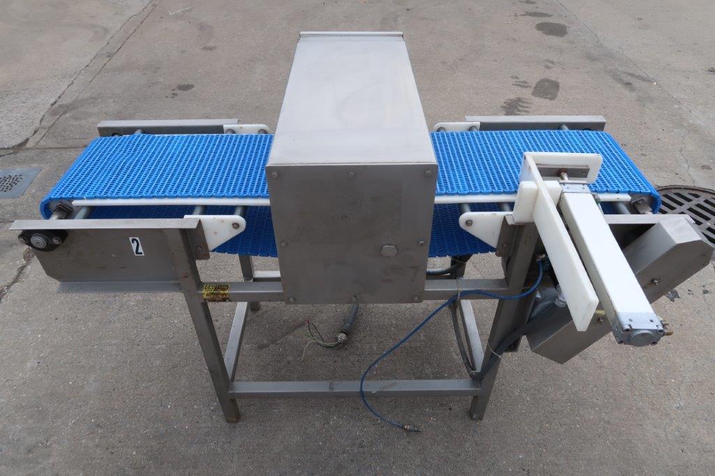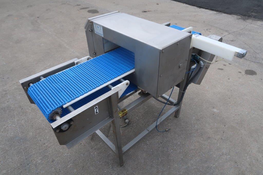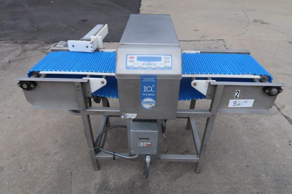 1-Used Loma Model IQ Conveyorized Metal Detector. Machine has stainless steel frame and aperture measuring approximately 13-7/8 In. Wide X 4-3/4 In. High. With front control panel, machine has air reject mechanism. (Stock #8617)