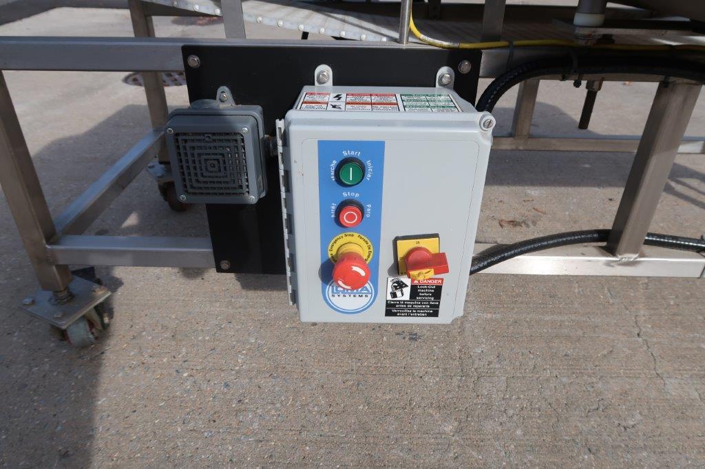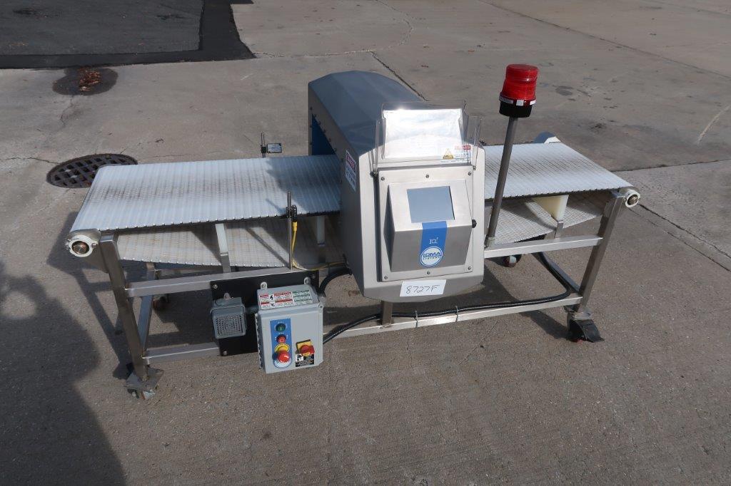 1-Used Loma Stainless Steel Motorized Metal Detector, Serial Number KIMD22559. Last used at a large bakery facility, aperture measures approximately 21 In. Wide X 7 In. High. With audible siren/alarm and automatic stoppage of conveyor when detecting, machine is mounted on stainless steel base, and is equipped with Loma starter box. Electrical specifications single phase, 60 cycle, 110 Volt electrics. (Stock #8727F)