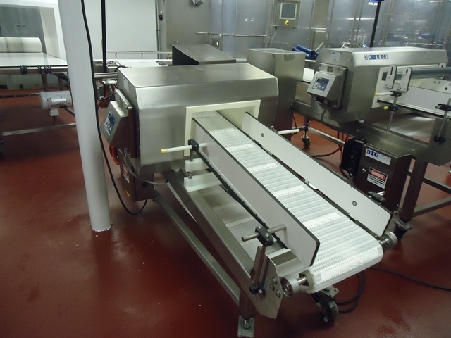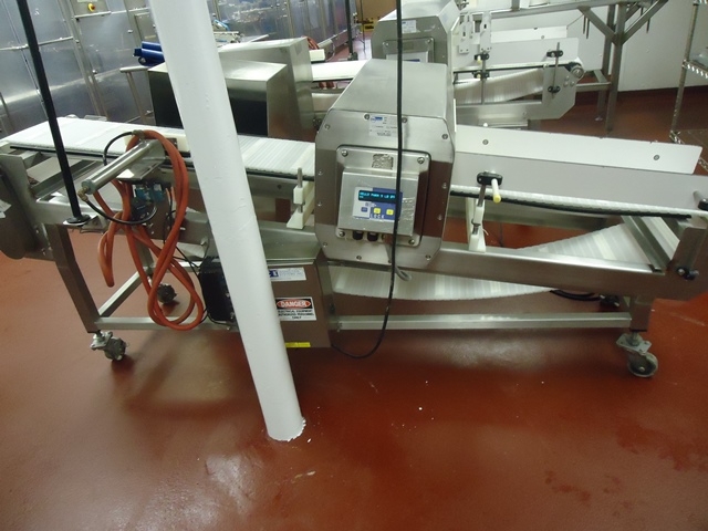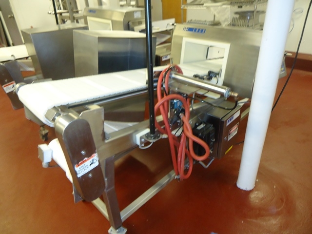 1-Used Loma/Lock Model MET30+ Stainless Steel Inclined Conveyorized Metal Detector, S/N 28191/1. With aperture/opening measuring approx. 13-3/4 Inch Wide x 6- 1/2 Inch High, unit is on stainless steel frame with casters for portability and was last used in cheese manufacturing operation. With air operated “push” reject arm, machine has digital display, variable speed control and single phase, 60 cycle, 110 Volt electrics. (Stock #8043B)
