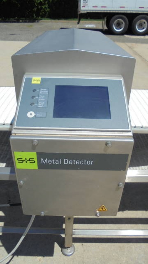 1-Used S + S “Detector 5” Stainless Steel Conveyorized Metal Detector, Model LS 500/200/125/289/143-1, Serial Number 11050002823-H, Order Number 046806.  With aperture/opening approx. 19 in. wide X 6-3/4 in. high , machine has 16 in. wide Plastic Conveyor Belt.  Driven by 3/4HP single phase, 115-208-230 volt motor.  Unit has pushbutton starter box.  Mounted on stainless steel base, last unsed in food industry.  (Stock # 8202i)