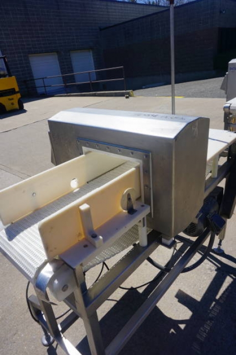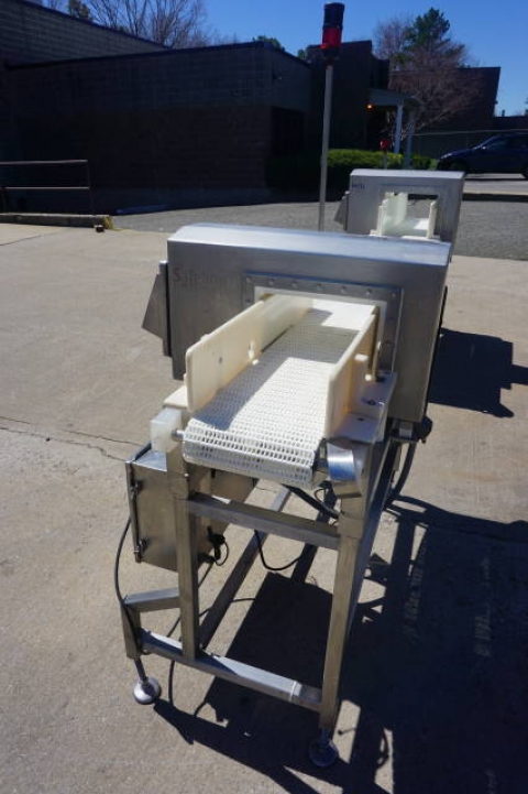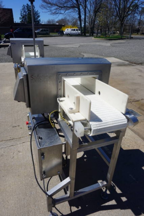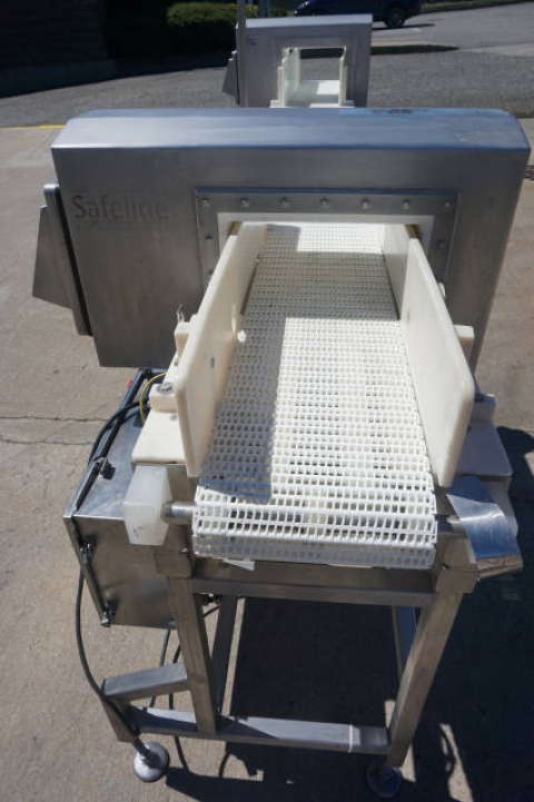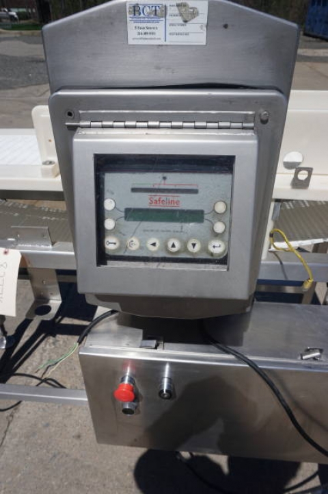 1-Pre-Owned Safeline Stainless Steel Conveyorized Metal Detector. Aperture measuring approx. 11-3/4 in. wide X 5-1/8 in. high. This Stainless Steel Metal Detector has stainless steel a pushbutton starter box and was last used in the potato processing industry. (Stock # 8277K)