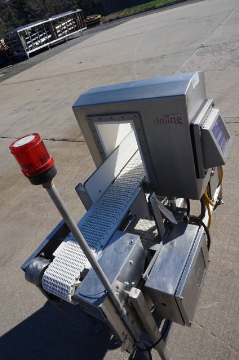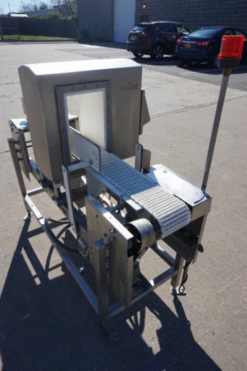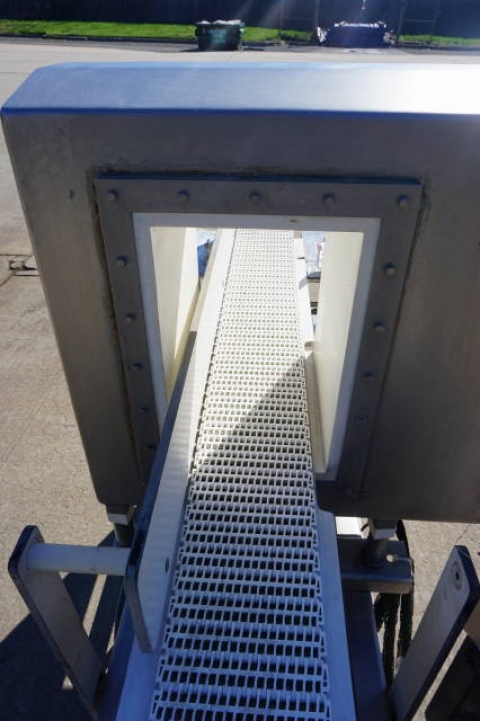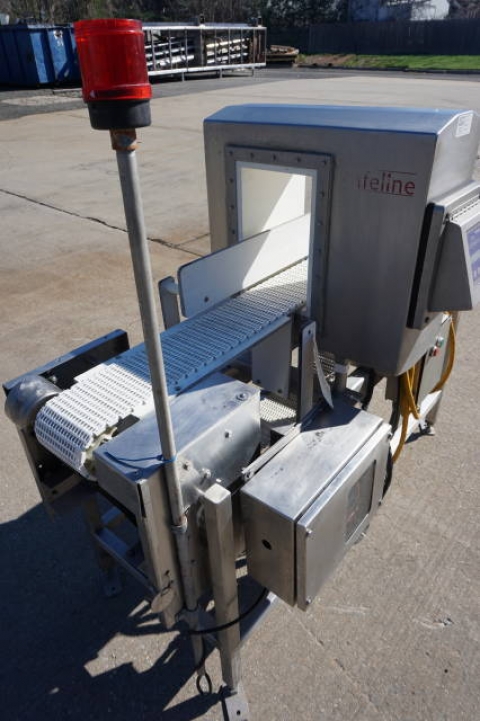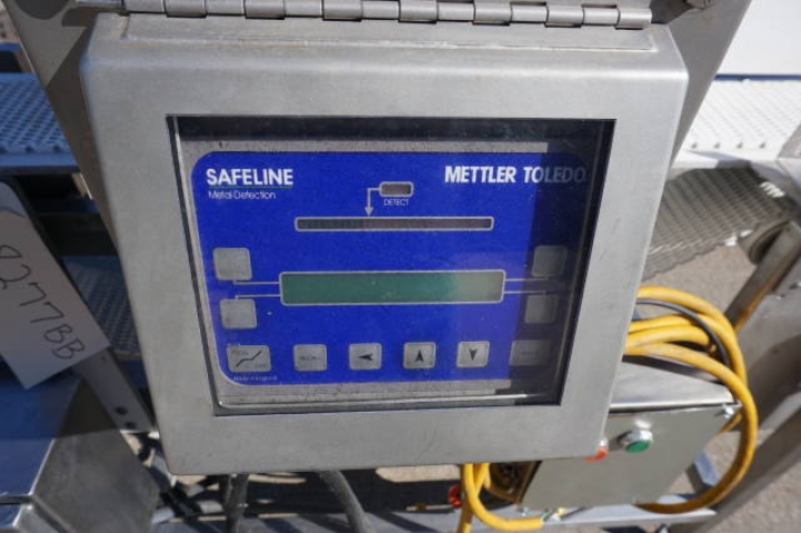 1-Used Safeline Stainless Steel Conveyorized Metal Detector, S/N 48569. Aperture measures approx. 8 In. Wide x 12 In. High. This stainless steel metal detector is equipped with 3/4HP 3/60/208-230/460 Volt stainless steel motor. (Stock #8277BB)