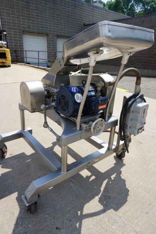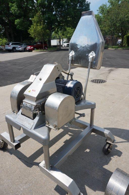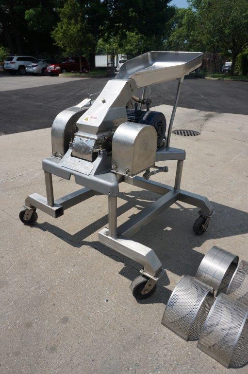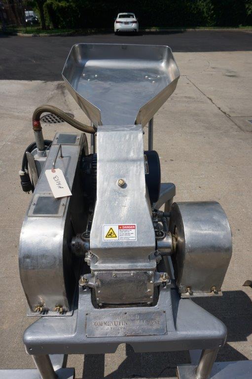 1-Used Fitzpatrick Model D6 Comminuting Mill/Pulverizer, S/N D6-4280. This pan fed machine is equipped with free swinging blades, sharp on one side and blunt on reverse side. Mounted on stainless steel base with casters for portability, machine is driven by 5HP, 3/60/208-230/460 Volt explosion proof motor. Equipped with Allen Bradley explosion proof starter box, machine was last used in the vitamin industry. Can be supplied with additional screens at additional cost (Stock #8514A)