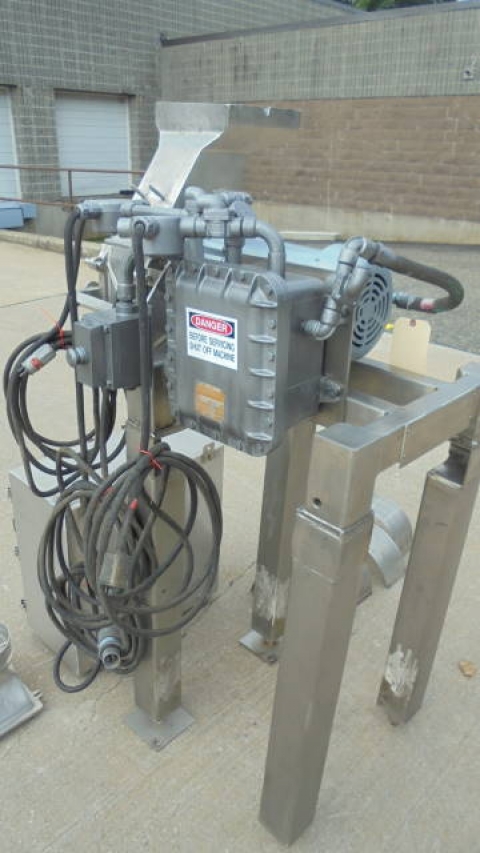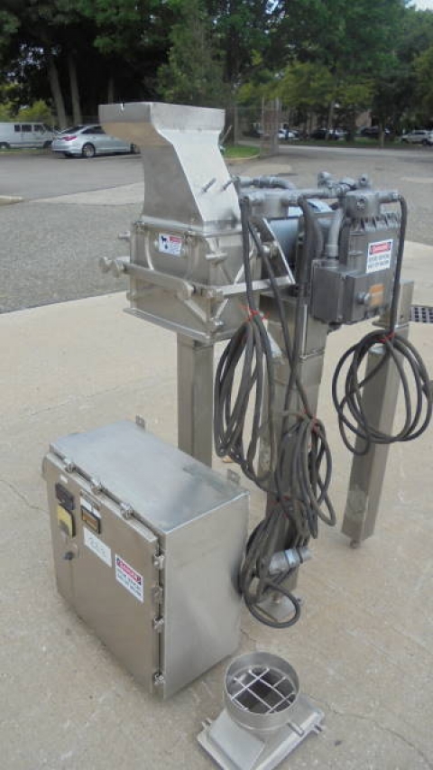 1-Used Fitzpatrick Model D6A Stainless Steel Comminutor/Pulverizer, S.N D6A-10559. Mounted on stainless steel base with stainless steel legs, this “Fitz Mill” is equipped with Type 316 polished blades and 316 stainless steel chamber. Driven by 5 HP/3HP two-speed explosion proof motor. Last used in pharmaceutical industry, machine can be supplied with stainless steel control panel if required. (Stock # 8212)