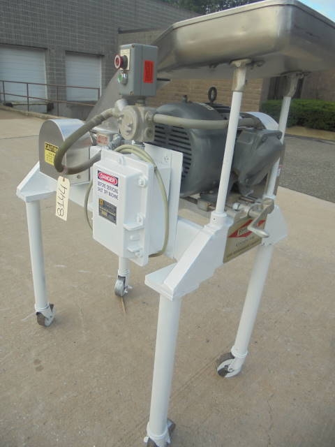1-Used Fitzpatrick Model DAS06 Comminuting/Pulverizing Mill, S/N 8055. Equipped with fixed blades, sharp on one side and blunt on reverse side, this pan fed machine is driven by 15HP, 3/60/230-460 Volt Explosion Proof Motor. On legs with casters for portability, mill comes equipped with a variety of stainless steel screens in assorted sizes. (Stock #8144)