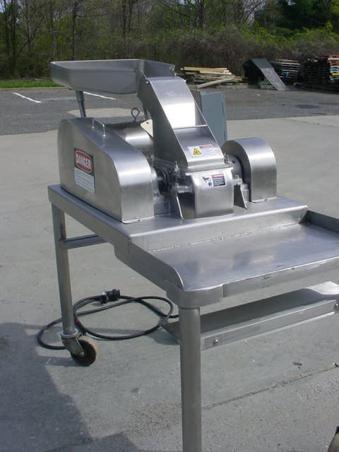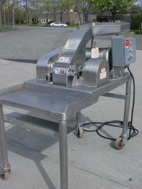 1-Used fitzpatrick model das06 stainless steel comminutor/pulverizer, s/n 10705. With stainless steel pan feed, mill is driven by 7.5 hp 3/60/208-230-460 volt stainless steel “wash down” motor. Equipped with fixed curved blades, sharp on one side and stair step on reverse. On stainless steel legs with casters for portability.