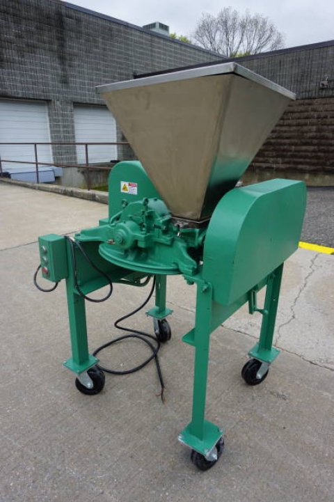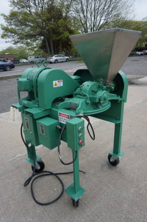 1-Used Mikro Model 1SH Pulverizer/Hammermill, Serial Number 5260. Equipped with stainless steel stirrup hammers, driven by 3 HP 3/60/220-440 volt Explosion Proof motor. Mounted on portable stand with casters, machine has horizontal feed screw driven by fractional HP Explosion Proof motor. With 18 inch by 18 inch stainless steel product feed hopper with lid, machine has starter box (non XP starter box). Last used in the personal care products industry. (Stock #8287A)