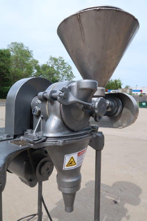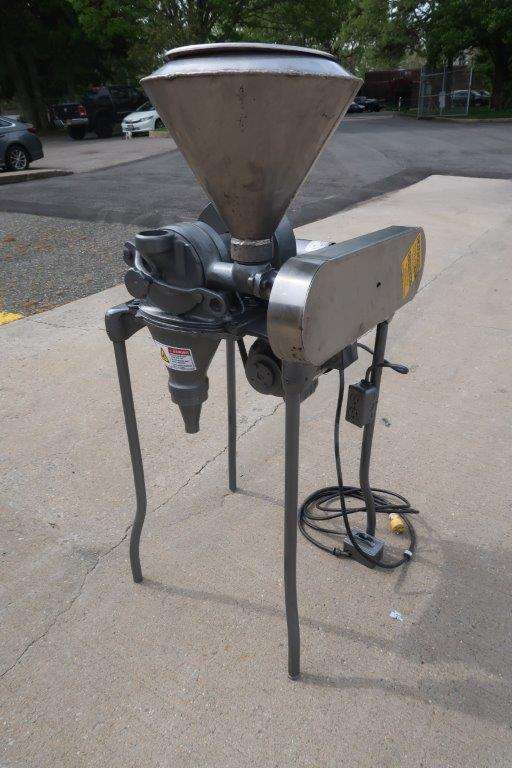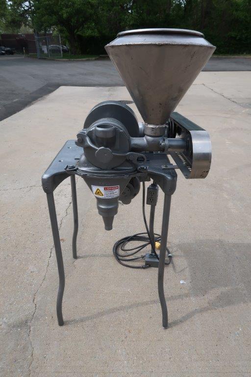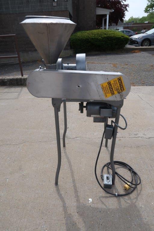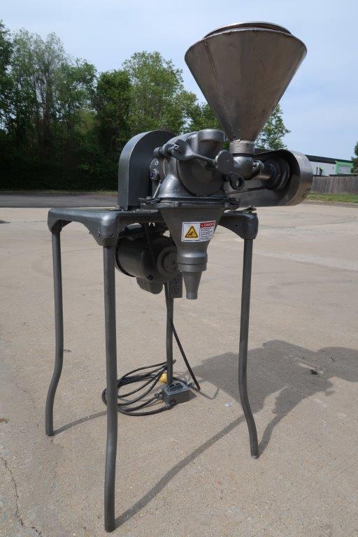 1-Used Mikro Bantam Type SH Pulverizer/Hammermill, S/N 6728. Mill has stirrup-type hammers driven by 3/4 HP single phase, 115-230 Volt motor. With Horizontal Feed Screw driven by a fractional HP single phase, 60 cycle, 115-Volt motor. The unit comes equipped with both a cone-shaped hopper and a screen. (Stock #8746A)