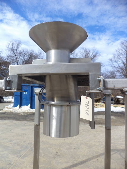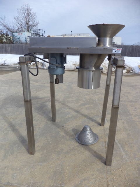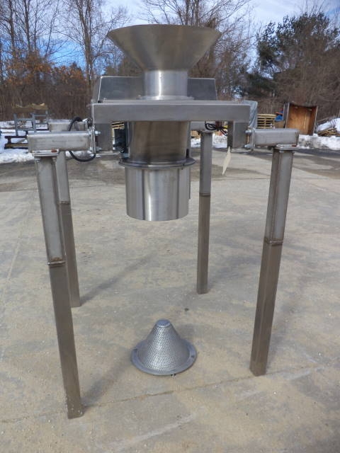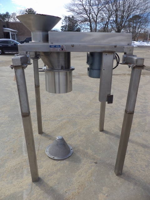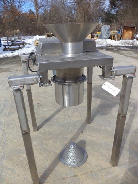 1-Used Quadro Comil Model 196s Size reduction mill, Serial Number 196-0863. This stainless steel mill is mounted on stainless steel stand and is driven by 7.5HP 3/60/230-460 volt motor. With approximately 18 inch diameter stainless steel conical feed hopper, mill is supplied with two perforated screens. (Stock# 7828A)