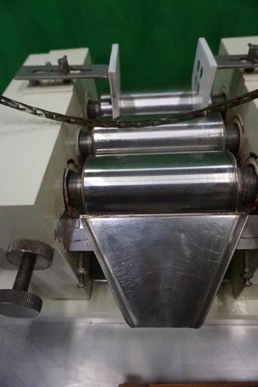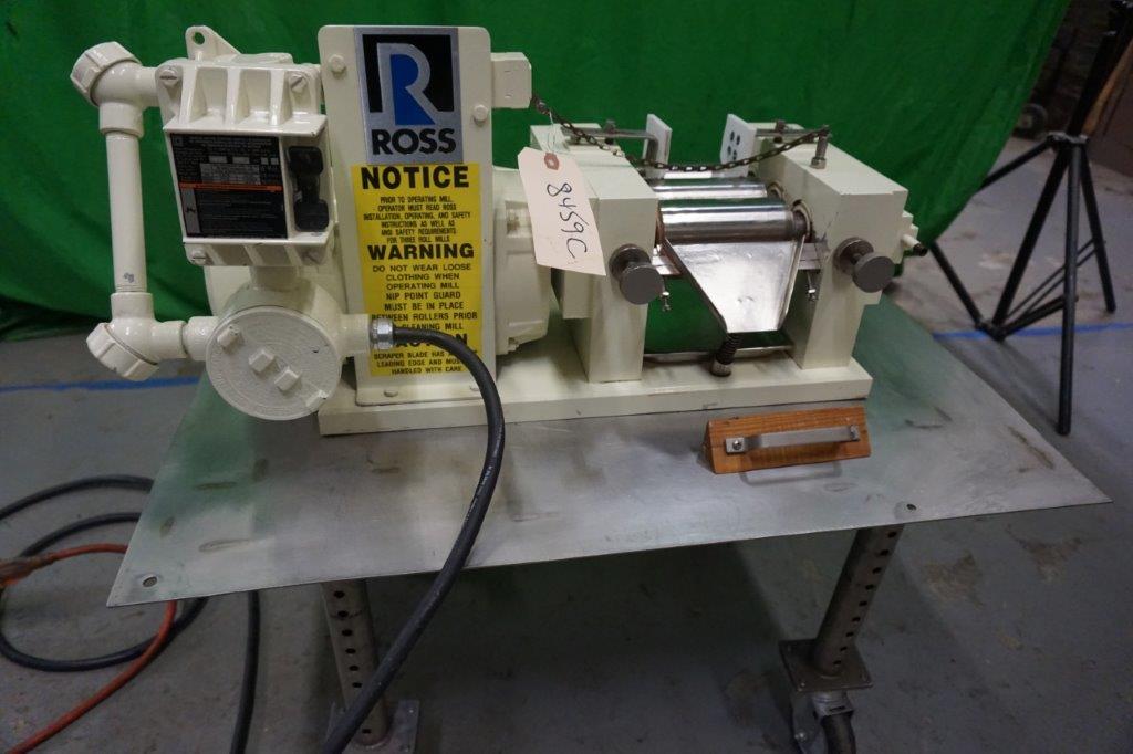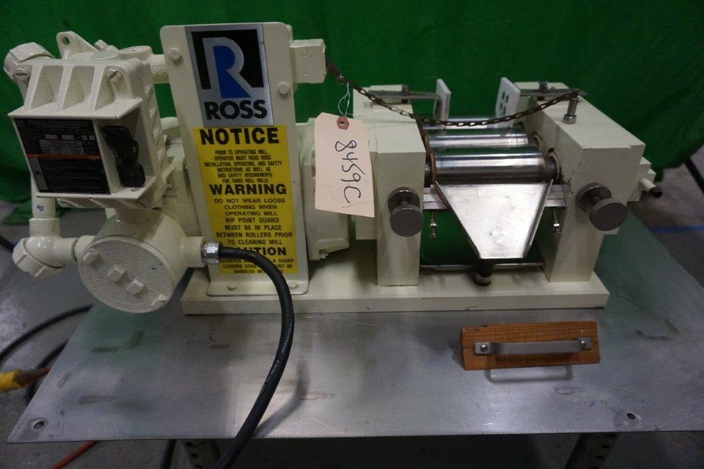 1-Used Ross Model 2.5 X 5TRM Tabletop Laboratory Three Roll Mill, S/N 102324. Equipped with 2 1/2 In. diameter X 5 In. long rolls, this mill is perfect for scale-up from bench to production. Equipped with end guides and apron, machine is driven by 1/2HP, single phase, 60 cycle, 115/230 Volt explosion proof motor. With bottom drip tray. Stainless Steel table shown available at additional cost (Stock #8459C)