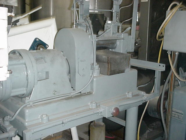 1-Used thropp lab size two roll mill, machine #1386. Rolls measure approx. 3″ diameter by 8″ long. Rolls are chrome-plated and cored for heating/cooling. Driven by 2hp 3/60/220-440 volt motor. On stand, with casters.