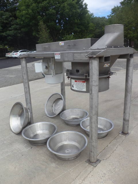1-Used American Process Systems/Erich Group Model CF-240 Stainless Steel Conical Finisher, S/N 5883.  Driven by 20 HP 3/60/230-460 volt motor.  Machine has six (6) assorted Stainless Steel Screens with different mesh sizes.  Suitable for “sticky” or heat sensitive materials, machine is useful for breaking up and dispersing “lumpy” ingredients, as well as agglomerated clumps.  Suitable for both dry and wet milling. Machine capable of 10,000 to 30,000 pounds per hour, depending on product and application.  (Stock 7904B)