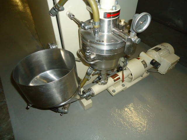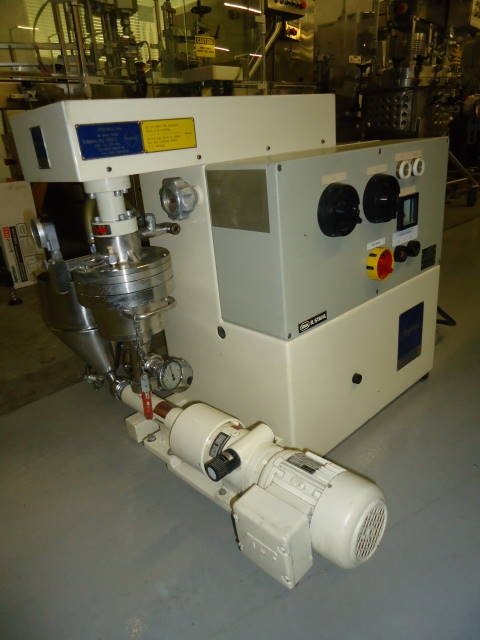 1-USED FRYMA MSM-12 STAINLESS STEEL COBALL MILL, S/N M13113. THIS BEAD MILL IS SET FOR THE FINEST GRINDING OF SUSPENSIONS AND HIGH VISCOUS PRODUCTS. IT IS JACKETED AND EQUIPPED WITH A FRACTIONAL HORSEPOWER PUMP WITH CONICAL HOPPER. GRINDING CHAMBER VOLUME IS APPROX. 0.5 LITER. CAPACITY UP TO 40 KG. PER HOUR. MILL ELECTRICAL SPECIFICATIONS: 3 PHASE, 60 CYCLE, 220 VOLT. (STOCK #7754C)
