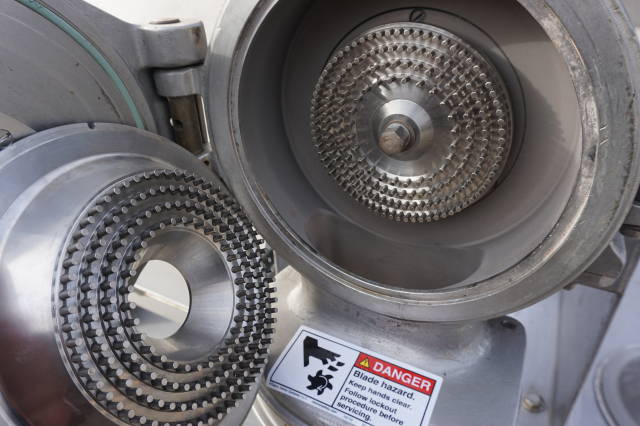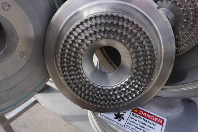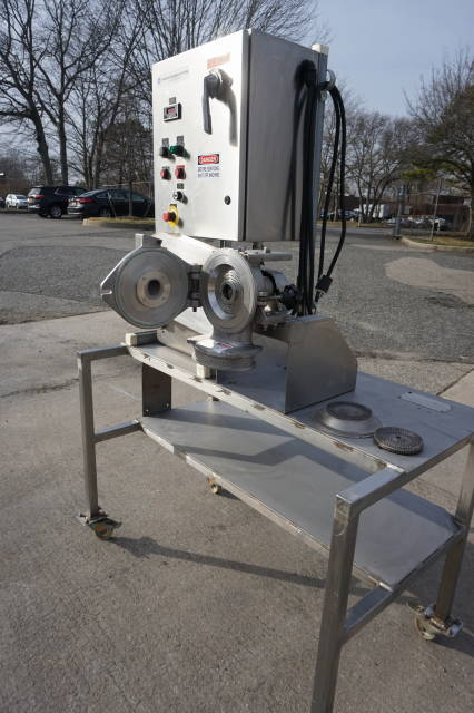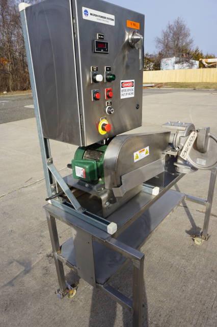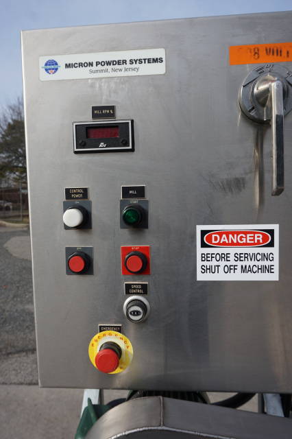 1-Used Hosokawa Micron Powder Systems “Alpine” Model D100-UPZ Pin Mill, machine number 901245-UPZ1 ( 42890). With stainless steel contact parts, Machine equipped with self-contained control panel, and is mounted on portable stand with casters. Driven by 1.5HP 3 phase 60 cycle, 230/460 volt motor (Stock #8338)