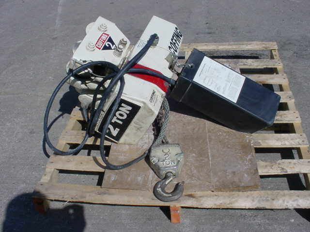1-Used coffing 2 ton electric hoist model n6c17nz26d. Driven by 1/4 hp, single phase, 60 cycle, 115-230 volt motor.