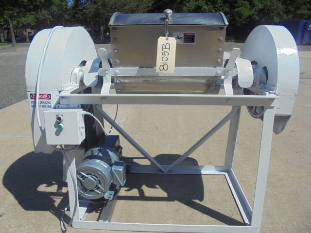 1-Used Lombi 25 Lb. capacity Pasta Dough Mixer. Stainless steel Mixing Tank measuring approx. 18 in. wide X 16 in. long X 15 in. deep. Machine driven by 3 HP 3 phase, 60 cycle, 220 volt motor with “on/off” starter box. (Stock #8105B)