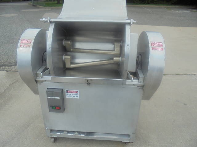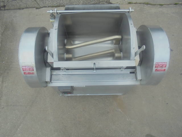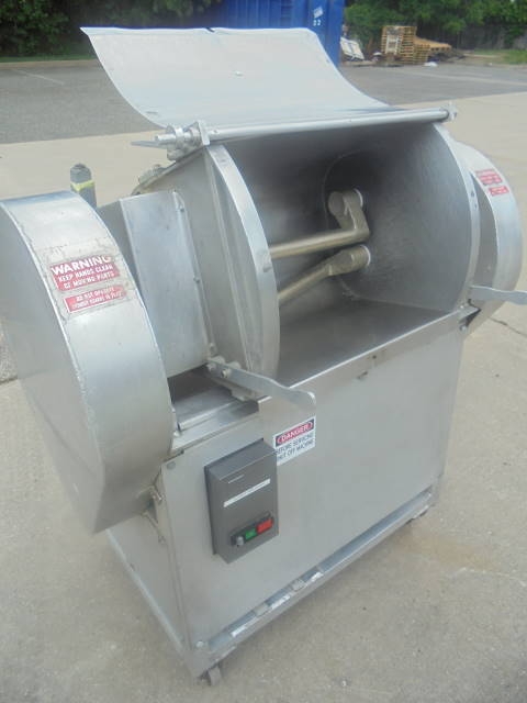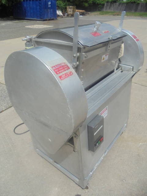 1-Used Lombi 50 Lb. capacity Pasta Dough Mixer. Stainless steel Mixing Tank measuring approx. 22 in. wide X 18 in. long X 15 in. deep. On casters for portability, Machine is driven by 3 HP single phase, 60 cycle, 115-230 volt motor with “on/off” starter box. (Stock #8105A)
