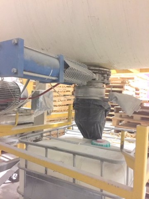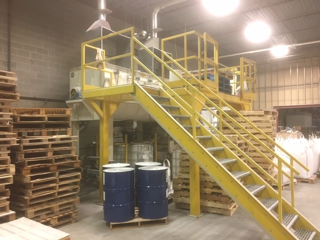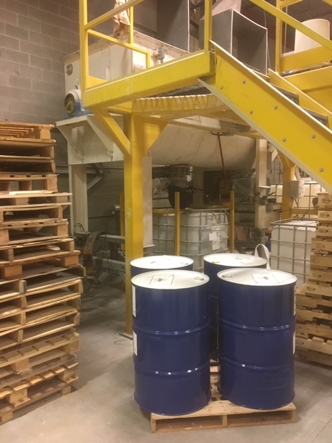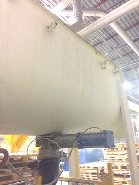 1-Used Patterson Approx. 200 Cu. Ft. Stainless Steel Double Ribbon Blender. Can be supplied with mezzanine. Blender last mixing dishwasher soap powder. Painted externally, blender has center discharge with pneumatic valve. Equipped with safety grate. (Stock #L1320)