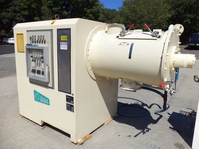 1-Used Lodige 300 Liter Stainless Steel Jacketed Pilot Plant Batch Mixer Model FM300L, Machine # 30252. Driven by 11 kw/18 kw main drive motor. Mixer has high speed chopper driven by 7.5 kw/8.6 kw motor. Mixer last used in vitamin manufacturing facility. (Stock #7925)