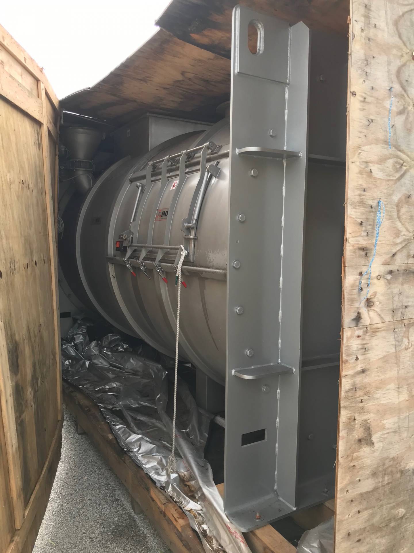 1-Used MXK 7,000 Liter Stainless Steel Plow Share Batch Mixer. Last used in the food industry, cylinder dimensions approx. 7 Ft. Wide X 11 Ft. 6 In. Long X 8 Ft. High. Equipped with choppers. Currently requires main drive motor (120 HP) and five chopper motors (7.5HP Each). New cost was approximately $400,000. (Stock #L1391)
