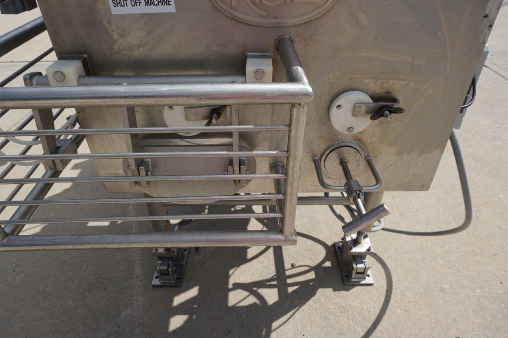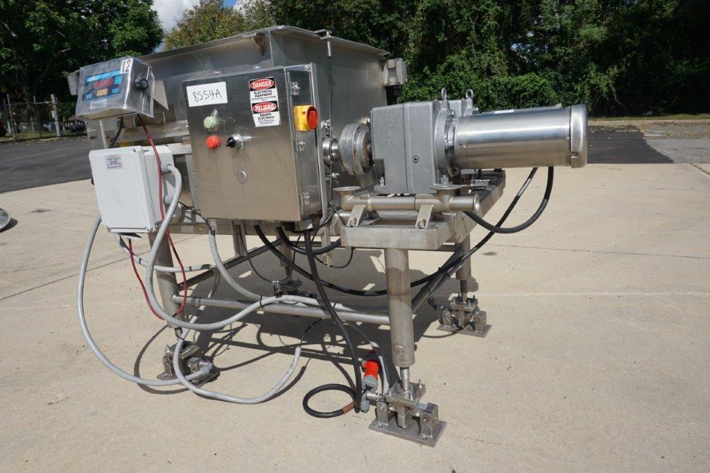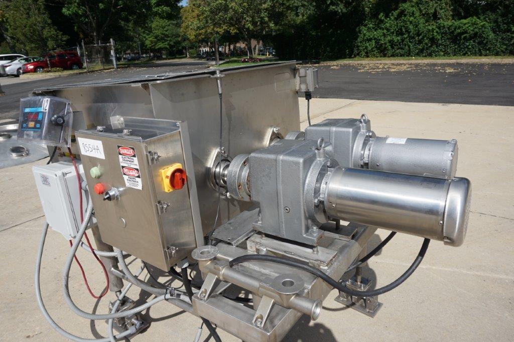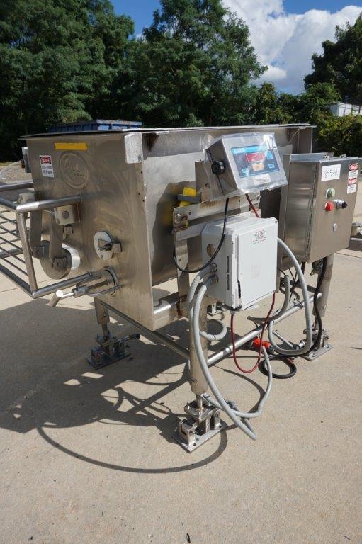 1- Used Rietz, Model RS-15-K5203, Stainless Steel Twin Shaft Screw Blender, S/N RS-730937. Tank interior dimensions measure approx. 27 In. Wide x 35 In. Long. Machine is equipped with a 2 HP stainless steel motor and a 1.5 HP motor, respectively, for the two screws, electrical specifications 3 phase, 60 cycle, 208-230/460 volt. Blender is equipped with end discharge, pneumatic cylinder and stainless steel starter box. Equipped with top safety grate, blender has load cells and doran 7000 scale. (Stock # 8554A)