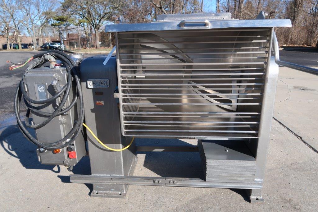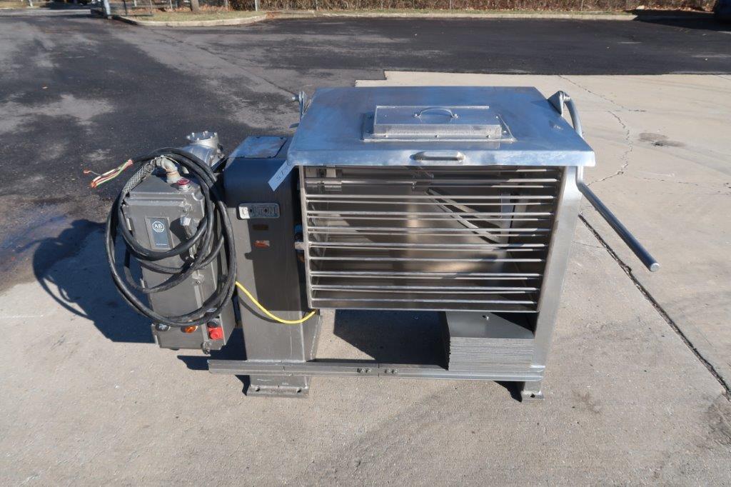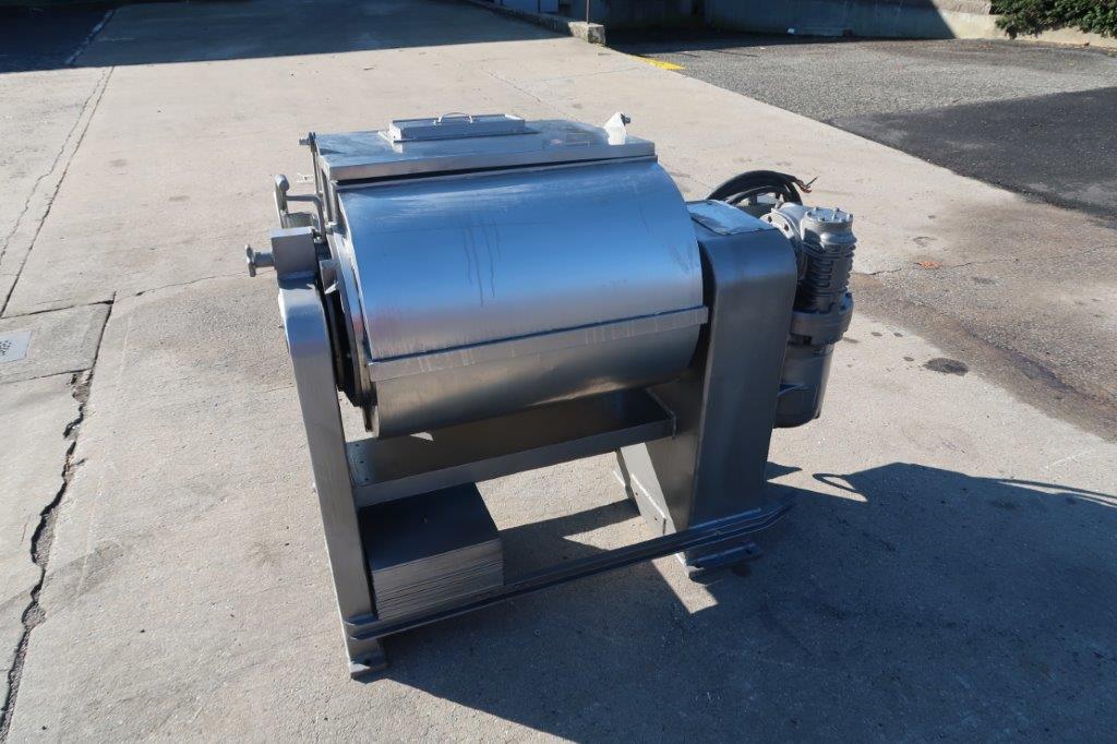 1-Used Colton Approximately 5 Cubic Foot Stainless Steel Powder Mixer, Serial Number 636-CP39. Last used in the vitamin industry, mixer bowl measures approximately 27 In. Wide X 22 In. Front to Back and 25 In. Deep. Equipped with tilt discharge, blender has stainless steel cover with hatch. Driven by 3 HP 3/60/208-220/440 Volt gearmotor. With safety grate, and Allen Bradley starter box. (Stock # 8615)