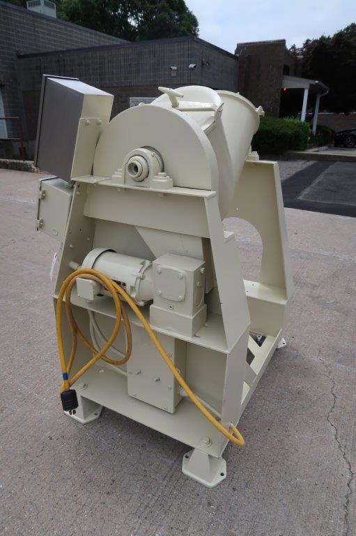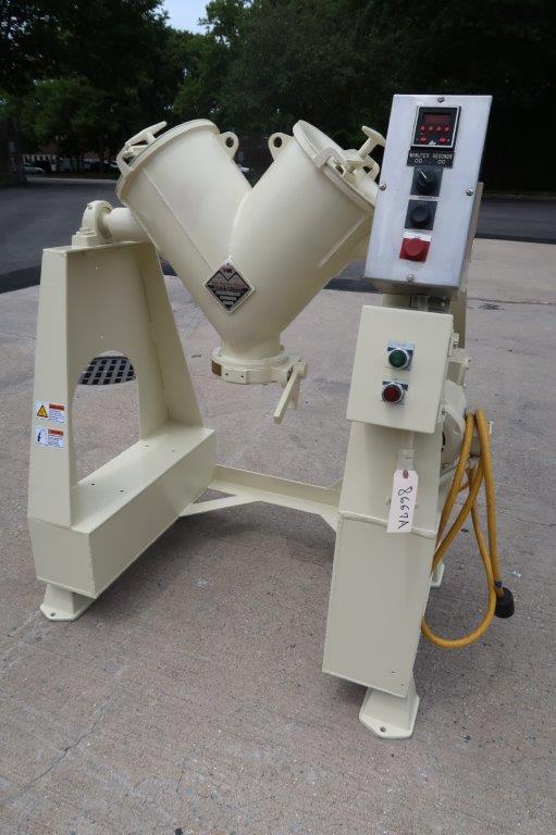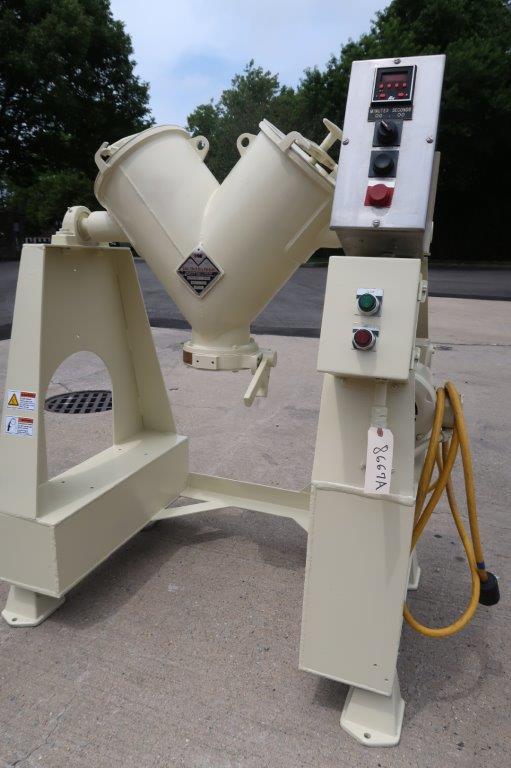 1 – Used Patterson Kelley 1 Cu. Ft. Stainless Steel Twin Shell “V’” Blender, Serial number 240168. This heavy duty blender is rated 325 LBS/CF maximum material density. Equipped with PK 6 In. diameter “butterfly” discharge valve. Blender is on stand and complete with top covers. Driven by ¾ HP 3/60/208-230/460 volt gearmotor. Equipped with starter box, machine last used in the nutraceutical industry. (Stock # 8667A)