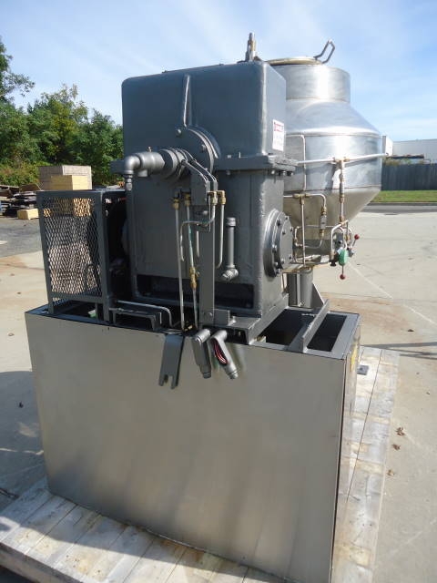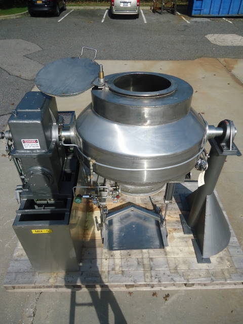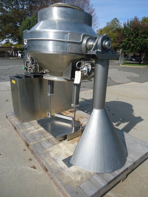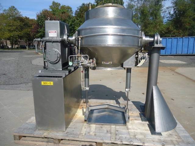 1-Used gemco approx. 10 cu.ft. Stainless steel double cone blender. Equipped with “gemcomatic” feature for drum loading and unloading unit. With approx. 44 in . Diameter and port openings of approx. 18 in. Diameter. Equipped with automatic actuated discharge valve, blender driven by 2 hp 3/60/208-230-460 volt motor. (stock # 7626a)