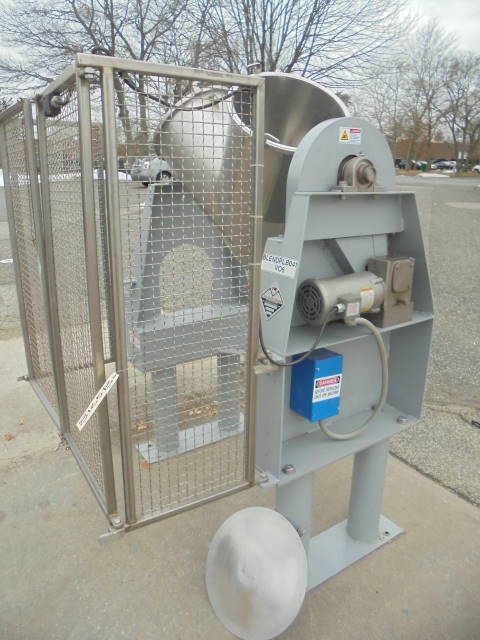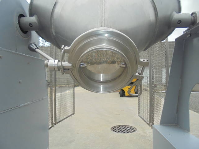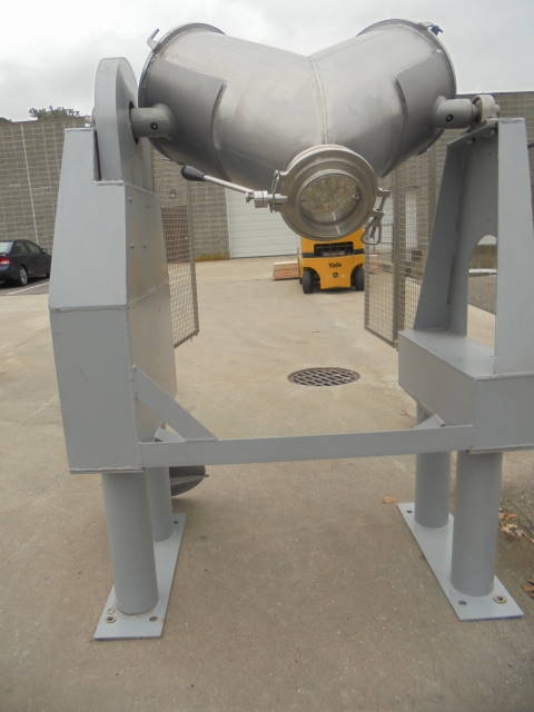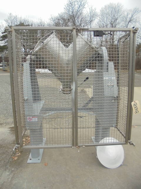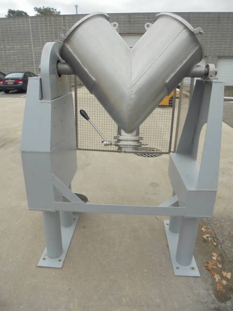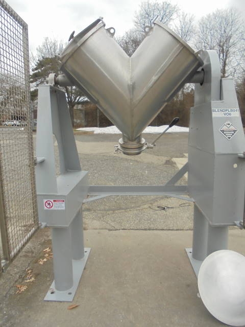 1-Used Patterson Kelley 3 Cu.Ft. Stainless Steel Twin Shell “V” Tumbling Blender, S/N 159173. Rated up to 110 lbs/cu.ft. maximum density, blender on stand and is equipped with safety cage. With approx. 6 in. diameter butterfly style discharge valve. Blender driven by 3/4 HP 3/60/230-460 volt electric motor. Equipped with lids, machine last used in personal products industry. (Stock #8165B)