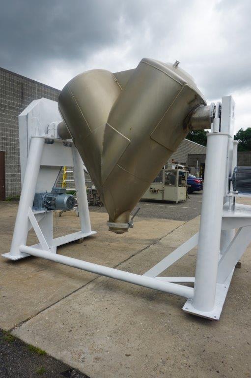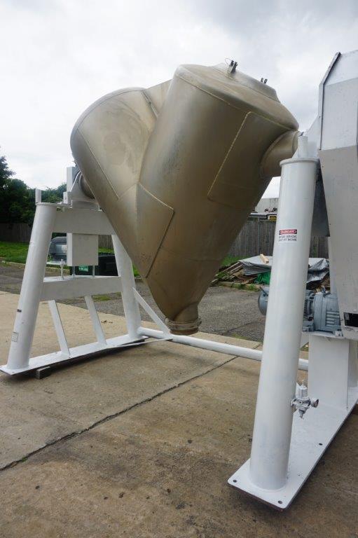 1- Used Patterson Kelley 60 Cu. Ft. Stainless Steel Twin Shell “V” Blender. Last used in the food industry, Blender is equipped with high speed intensifier bar. On stand, Blender has an approx. 12 In. diameter butterfly discharge valve. Equipped with 10 HP main drive motor, as well as a 30HP secondary motor for driving the high speed intensifier bar. ( Stock # 8534)