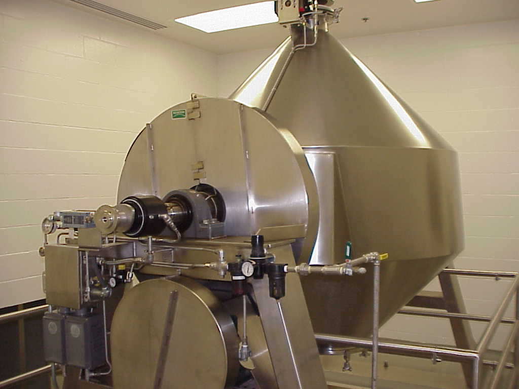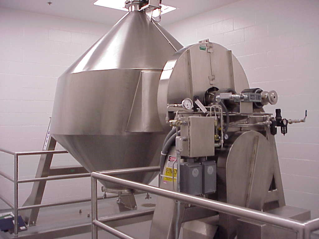 1-Used gemco 50 cu.ft. Stainless steel sanitary slant cone blender. Last used in pharmaceutical production, this blender is approx. Five years old and is equipped with many features. (stock #l1360)