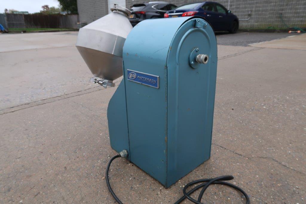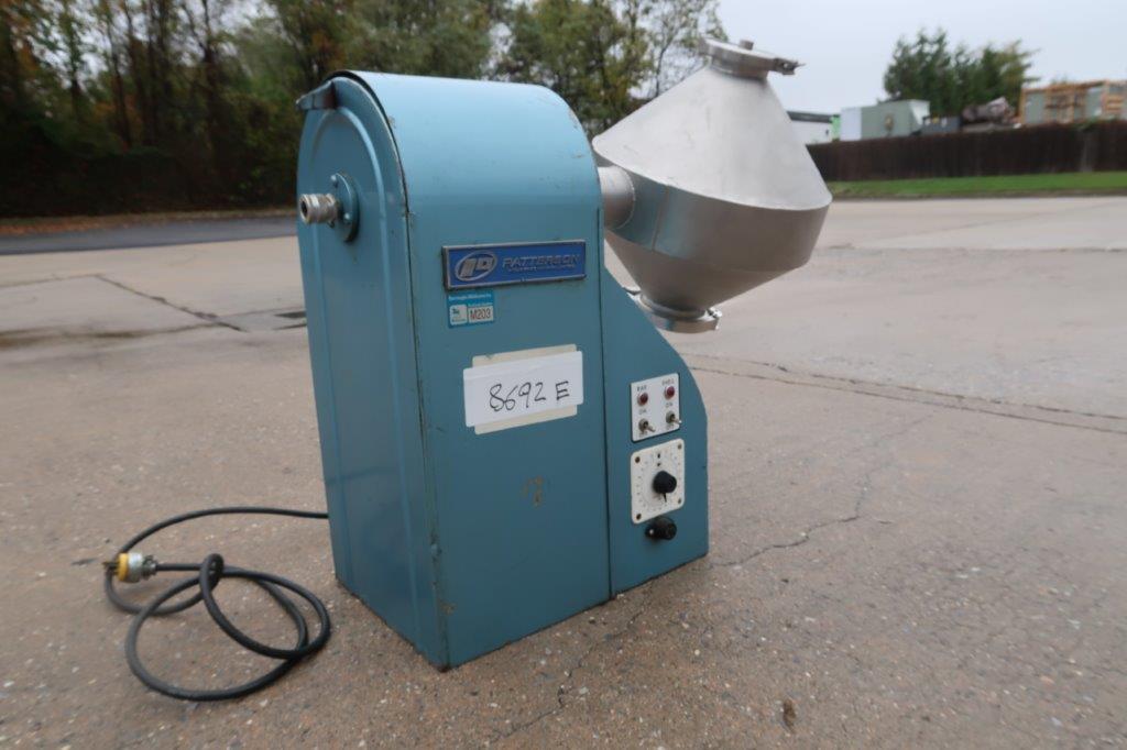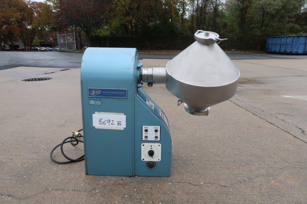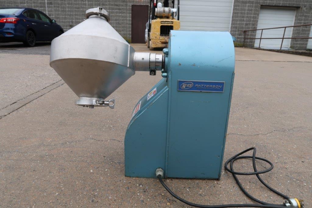 1-Used Patterson Approximately 1 Cubic Foot Stainless Steel Tabletop Laboratory Double Cone Blender. Tumbling portion measures 13 In. wide X 15 In. high, blender is driven by single phase, 110 Volt electric motor. (Stock #8692E)