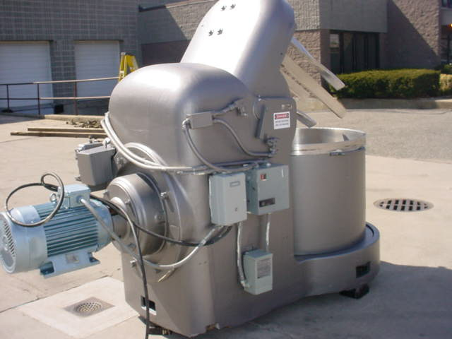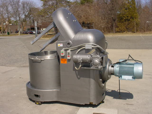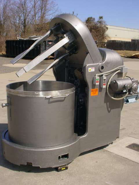 1-Used day 100 gallon stainless steel pony mixer model 4a, s/n 40256. Equipped with stainless steel blades and approx. 36″ diameter x 25″ deep stainless steel mix can. Driven by 10 hp 3/60/230-460 volt motor, mixer has accessory motor for automatic tilt out of agitation.