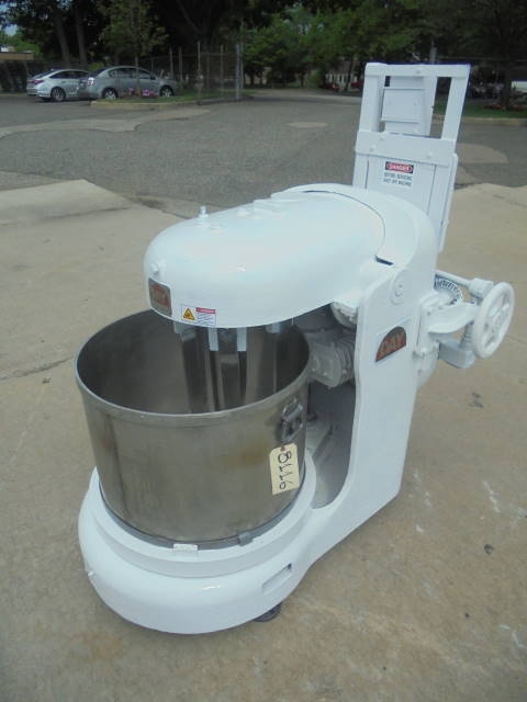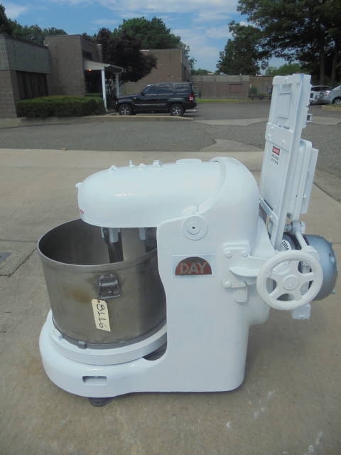 1-Used Day 40 Gallon “Pony” Stainless Steel Planetary Mixer, S/N 81510. Stainless steel can measures approx. 26 in. diameter X 18 in. deep. Driven by 5 HP 3/60/220 volt motor. Equipped with Stainless Steel Planetary Mixer Blades and Baffle. (Stock #8116)