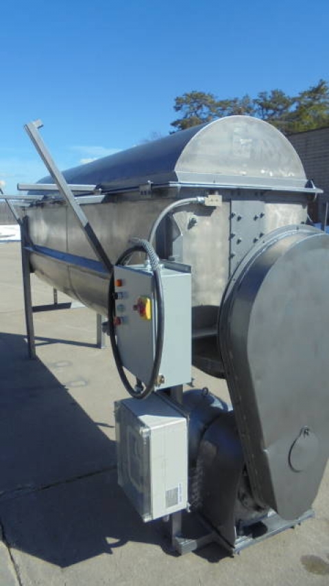 1-Used Readco Approx. 50 Cu. Ft. Stainless Steel Double Ribbon Blender, S/N 91899. Trough dimensions approx. 30 In. Wide X 120 In. Long, bender is roller chain driven by 10 HP, 3/60/220-440 Volt motor through Falk speed reducer. With starter box, blender has Yaskawa P1000 digital variable frequency drive . With approx. 6 In. diameter center bottom discharge “butterfly” valve, blender is on leg with leg extensions. (Stock #8178B)