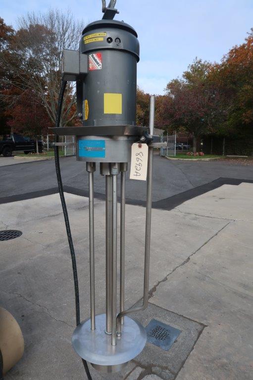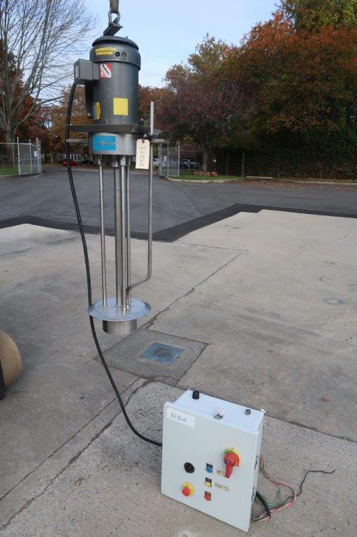 1-Used Arde Barinco Model CJ-50-1 Type 316 Stainless Steel “Drop-In” Homogenizing Mixer, Model CJ-50-1, Serial Number 1552. Equipped with approximately 34 In. long shaft and 7 In. diameter homogenizing housing (6 In. rotor), mixer is driven by 5 HP 3/60/208-230/460 Volt 3,450 RPM motor. Last used in personal care products industry, machine comes equipped with starter box, with variable speed control (Stock #8692A)